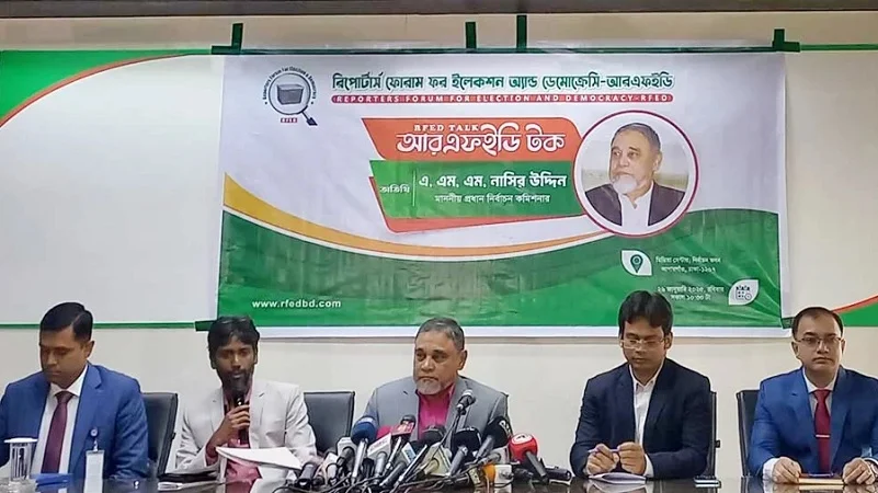 ঢাকা, ২৬ জানুয়ারী ২০২৫ইং (ঢাকা টিভি রিপোর্ট): আজ রবিবার ঢাকার আগারগাঁওয়ে নির্বাচন কমিশন কার্যালয়ে রিপোর্টার্স ফোরাম ফর ইলেকশন অ্যান্ড ডেমোক্রেসি (আরএফইডি) আয়োজিত মতবিনিময় সভায় প্রধান নির্বাচন কমিশনার (সিইসি) এ এমএম নাসির উদ্দিন বলেছেন, আগামী জাতীয় নির্বাচনের জন্য ‘ডিসেম্বরকে টার্গেট করে কাজ শুরু হয়েছে। আর সেজন্য ‘অক্টোবরের মধ্যেই মাঠ পর্যায়ের সব কাজ শেষ করার চেষ্টা চলছে।
