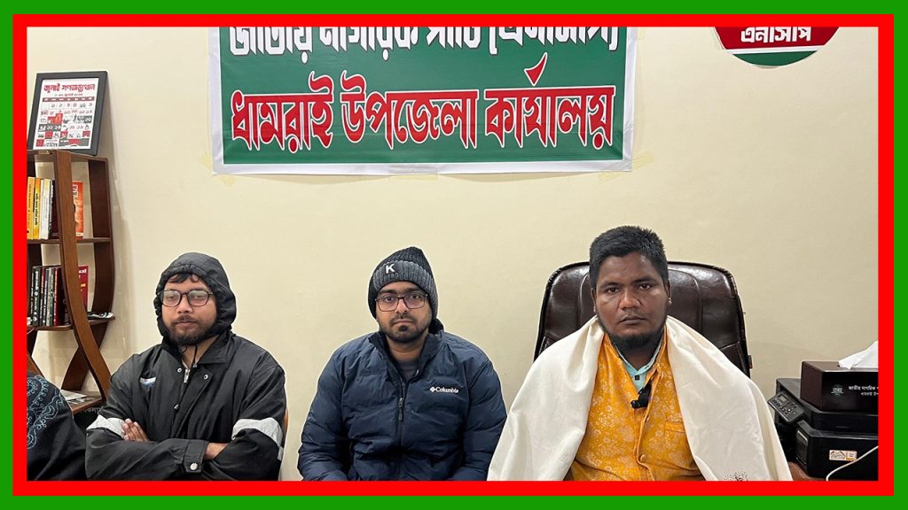 আজ সোমবার (২৯ ডিসেম্বর) দুপুরে এক সংবাদ সম্মেলনের মাধ্যমে বিষয়টি নিশ্চিত করেন জাতীয় নাগরিক পার্টির ধামরাই উপজেলা কমিটির প্রধান সমন্বয়কারী ইস্রাফিল হোসেন খোকন।