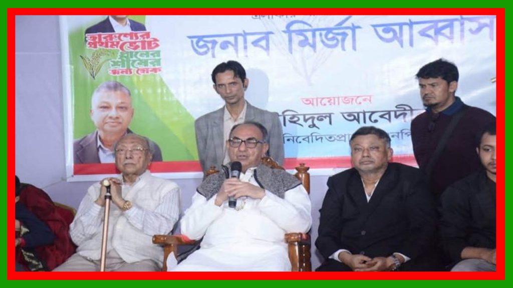 মতবিনিময় সব শেষে এরপর তিনি ২১নং ওয়ার্ডের বিশ্ব সাহিত্য কেন্দ্র গলিতে গণসংযোগ কালে যুবকদের উদ্দেশ্যে মির্জা আব্বাস বলেন, চাকরিটা বড় বিষয় মনে করলে কেউ কখনো সমস্যার সমাধান করতে পারবে না। চাকরির বাইরে যেসব স্ট্রাকচার বা প্রতিষ্ঠান তৈরি করা যায়, সেগুলোও আমাদের শিখতে হবে। আজ আমি একটা ফ্রিল্যান্সিং ড্যাম্পিং-এ গিয়েছিলাম। সেখানে ছেলেরা এমন ধরনের প্রশ্ন করেছিল। তবে এখন ফ্রিল্যান্সিং করে বাংলাদেশে খুব ভালো টাকা আয় করা সম্ভব। যদি কেউ মন দিয়ে কাজ করে, তাহলে খুব ভালো আয় করতে পারে।