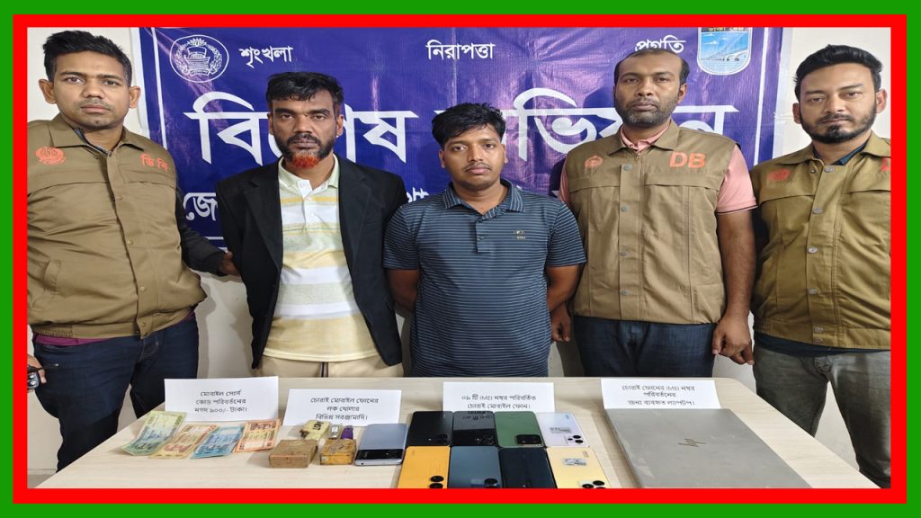 IMEI নম্বর পরিবর্তিত ০৯ (নয়)টি চোরাই মোবাইল ফোন, চোরাই মোবাইল ফোনের লক খোলার বিভিন্ন সরঞ্জামাদি, নগদ ৯০০ (নয়শত) টাকা উদ্ধার করা হয়।