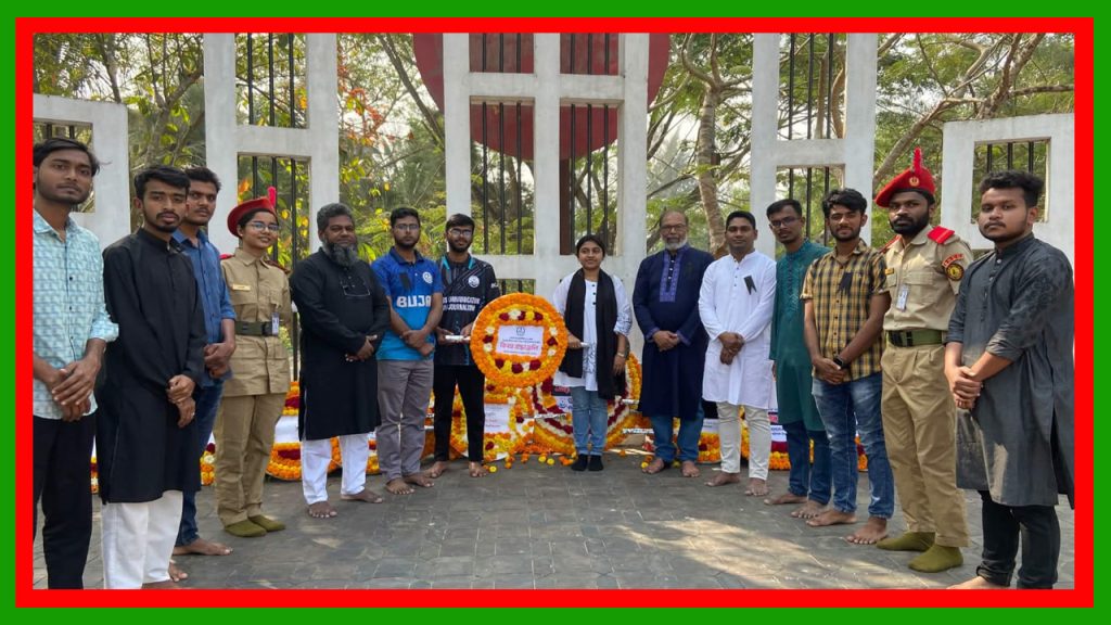 শ্রদ্ধা নিবেদনকালে ববিসাসের যুগ্ম সাধারণ সম্পাদক মেহরাব হোসেন, কোষাধ্যক্ষ মাসুদ রানা ও দপ্তর সম্পাদক এনামুল হোসেনসহ সমিতির অন্যান্য সদস্যরা উপস্থিত ছিলেন।