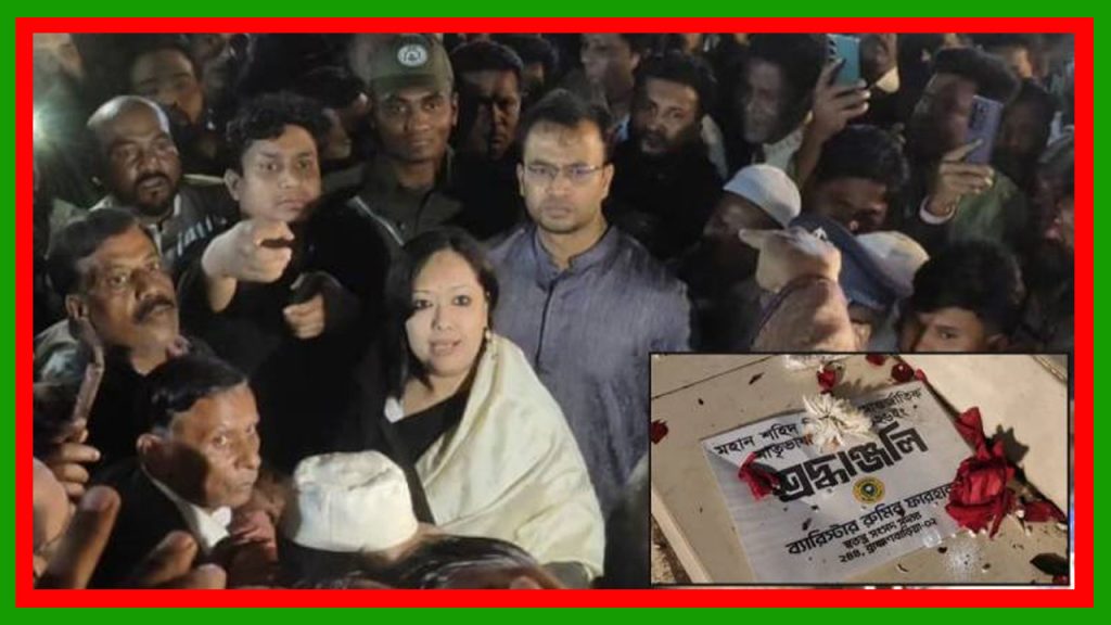 ব্রাহ্মণবাড়িয়া, ২১ ফেব্রুয়ারী ২০২৬ইং (ঢাকা টিভি রিপোর্ট): আন্তর্জাতিক মাতৃভাষা ও শহীদ দিবসের প্রাক্কালে ব্রাহ্মণবাড়িয়ার সরাইলে শহীদ মিনারে শ্রদ্ধা জানানোকে কেন্দ্র করে উত্তেজনার ঘটনা ঘটেছে। বাধার মুখে শহীদ মিনারে পুষ্পস্তবক অর্পণ করতে পারেননি ব্রাহ্মণবাড়িয়া-২ আসনের নবনির্বাচিত সংসদ সদস্য ব্যারিস্টার রুমিন ফারহানা। এ সময় তার আনা পুষ্পস্তবক ছিঁড়ে ফেলার অভিযোগ উঠেছে। শুক্রবার দিবাগত রাত ১২টার দিকে সরাইল উপজেলার কেন্দ্রীয় শহীদ মিনার প্রাঙ্গণে এ ঘটনা ঘটে।