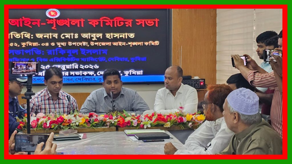 দেবিদ্বার (কুমিল্লা), ২৫ ফেব্রুয়ারী ২০২৬ইং (ঢাকা টিভি রিপোর্ট): আজ বুধবার (২৫ ফেব্রুয়ারি) দেবিদ্বার উপজেলা নির্বাহী অফিসারের (ইউএনও) সভাকক্ষে অনুষ্ঠিত মাসিক আইনশৃঙ্খলা সভায় প্রধান অতিথির বক্তব্যে কুমিল্লা-৪ (দেবিদ্বার) আসনের নবনির্বাচিত সংসদ সদস্য হাসনাত আবদুল্লাহ আইনশৃঙ্খলা কমিটির সভায় পুলিশের শীর্ষ কর্মকর্তাদের উপস্থিতিতেই থানার অভ্যন্তরীণ দুর্নীতি ও দালাল সিন্ডিকেট নিয়ে ক্ষোভ ঝাড়লেন।তিনি থানার সেকেন্ড অফিসারকে ‘দুর্নীতিবাজ’ আখ্যা দিয়ে ওসিকে থানা দালালমুক্ত করার নির্দেশনা দেন।