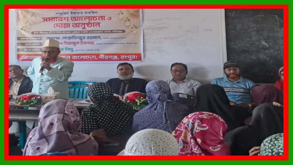সকল সহযোগিতা নিয়ে সর্বদা পাশে থাকবে সমাজসেবা অফিস।” আইন শৃঙ্খলা বিষয়ে নারীদের ভূমিকা নিয়ে সচেতনতামূলক বক্তব্য রাখেন এস আই বদিরুজ্জামান বাদল। নারী নেত্রী ওমেন্স ফোরামের পীরগঞ্জ উপজেলা সাধারণ সম্পাদক মোরশেদা বেগম সহ আরও অন্যান্য বক্তারা তাঁদের বক্তব্যে গুরুত্বারোপ করেন।