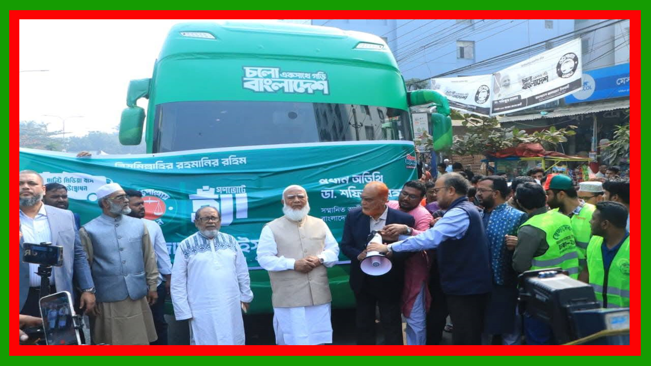 রাজধানীর ‘মিরপুর-১০’-এ জামায়াতের অফিস ও মাল্টিমিডিয়া বাসের উদ্বোধন করলেন জামায়াত আমির